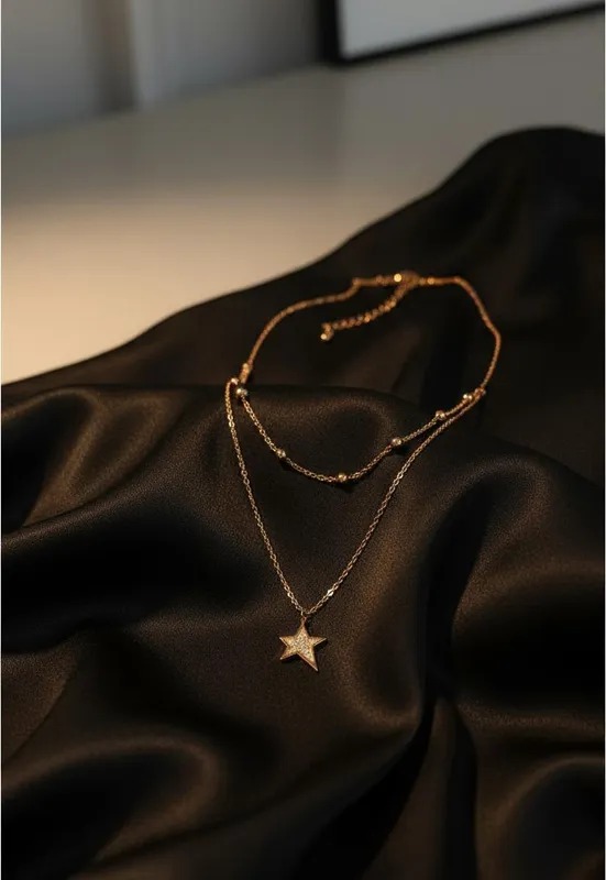 Com um design de gargantilha, possui um comprimento de 36 cm que se adapta confortavelmente ao pescoço. O pingente em forma de estrela, adornado com pedras de zircônia, realça a beleza da peça, refletindo luz e trazendo um toque de sofisticado ao seu visual.