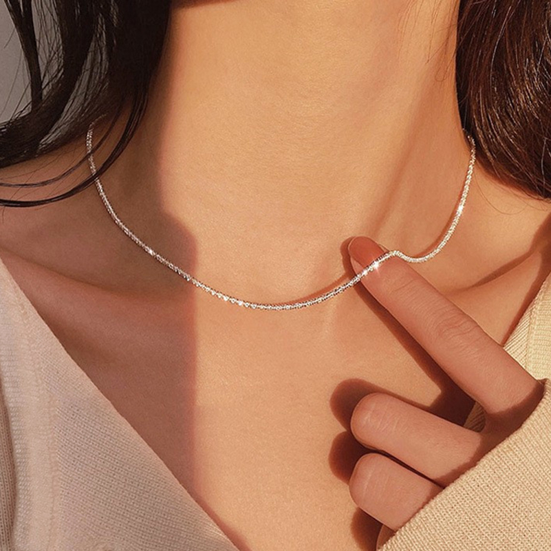 Sua estética elegante, sem pingente ou pedras, permite que o foco permaneça na pureza da prata, tornando-o uma escolha perfeita para quem busca um acessório discreto, mas impactante. Ao escolher este colar, você não apenas veste uma joia, mas leva consigo um símbolo de estilo atemporal e singularidade.