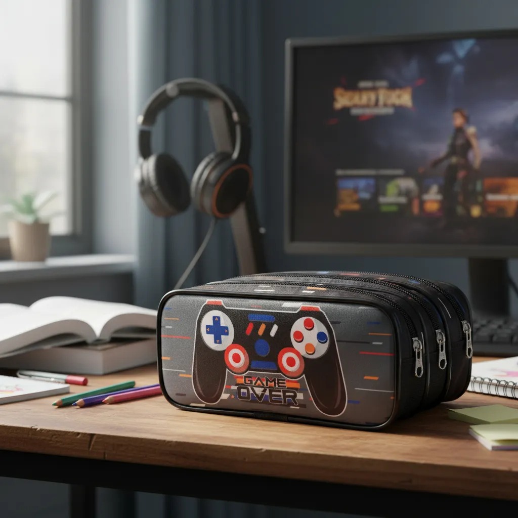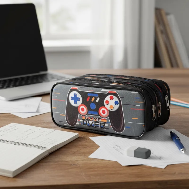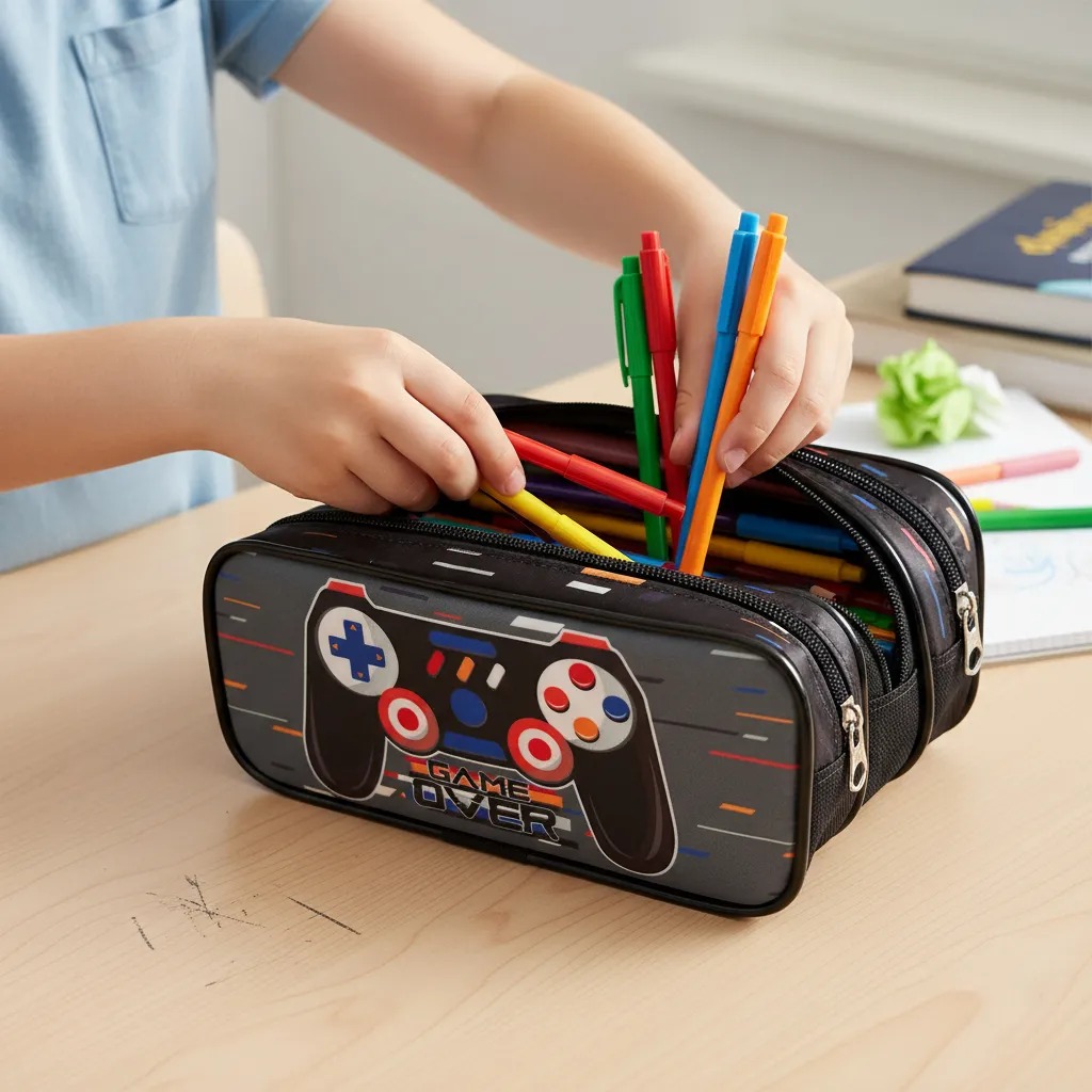 O Estojo Escolar Triplo Game Over da marca Estojo Kids é a escolha perfeita para crianças que buscam organização e estilo. Com três compartimentos, ele oferece amplo espaço para até 80 lápis, permitindo que os pequenos mantenham seus materiais sempre à mão e bem organizados.