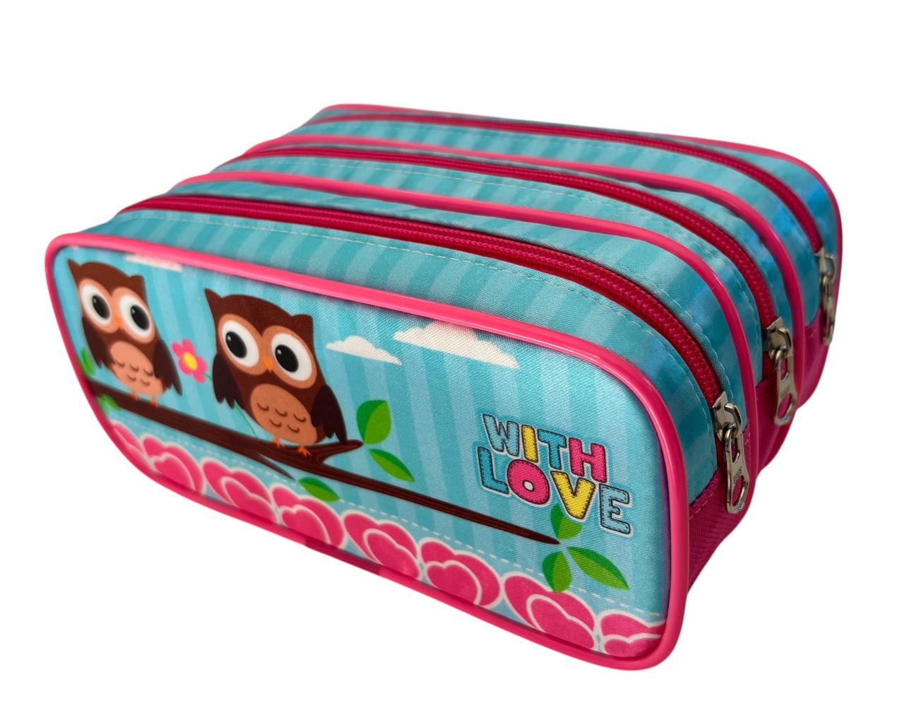 ESTOJO ESCOLAR CORUJA TRIPLO ESTOJOS KIDS - Estojo Kids
